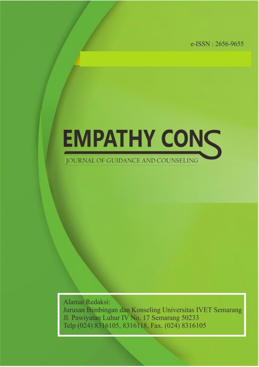 Jurnal empathy couns merupakan jurnal ilmiah yang diterbitkan oleh Jurusan Bimbingan dan Konseling Universitas IVET Semarang pada bulan Februari dan Agustustus setiap tahunnya. Jurnal ini menerbitkan karya ilmiah di bidang bimbingan dan konseling yang terkait dengan bidang pendidikan dan non pendidikan. Jurnal ini menyediakan kesempatan bagi para peneliti untuk mempublikasikan karya ilmiahnya