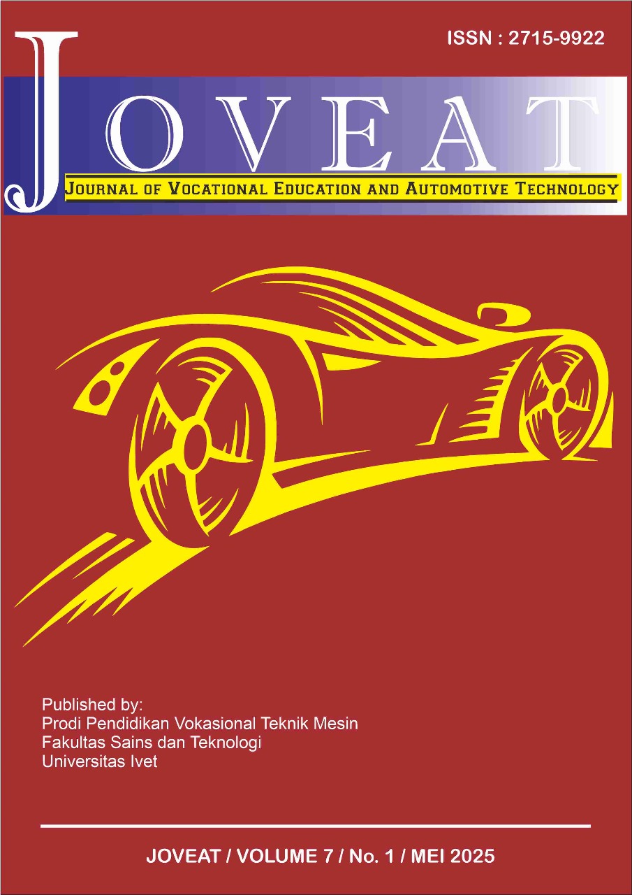 Penelitian jenis kuantitatif dengan pendekatan statictik deskriptif ini bertujuan untuk menjelaskan pengaruh Mata Kuliah Kewirausahaan dan Penyetelan Sepeda Motor Terhadap Minat Berwirausaha di Bidang Otomotif Mahasiswa Pendidikan Vokasional Teknik Mesin Universitas Ivet . Hasil Penelitian adalah (1) Mata Kuliah Kewirausahaan berpengaruh positif signifikan terhadap Minat Berwirausaha di Bidang Otomotif Mahasiswa Pendidikan Vokasional Teknik Mesin Universitas Ivet dengan nilai thitung > ttabel sebesar (3,388 > 1,688) nilai signifikasi 0,001 < 0,05 dan sumbangan relatifnya sebesar 48%. (2) Penyetelan Sepeda Motor berpengaruh positif signifikan Minat Berwirausaha di Bidang Otomotif Mahasiswa Pendidikan Vokasional Teknik Mesin Universitas Ivet dengan nilai thitung > ttabel sebesar (4,741 > 1,688) nilai signifikasi 0,000 < 0,05 dan sumbangan relatifnya sebesar 62,5%. (3) Terdapat pengaruh positif dan signifikan antara pengaruh Mata Kuliah Kewirausahaan dan Penyetelan Sepeda Motor Terhadap Minat Berwirausaha di Bidang Otomotif Mahasiswa Pendidikan Vokasional Teknik Mesin Universitas Ivet yang ditunjukan dengan Fhitung 29,205 > Ftabel 3,13 nilai signifikasi 0,000 < 0,05 dan sumbangan relatifnya sebesar 77,8%